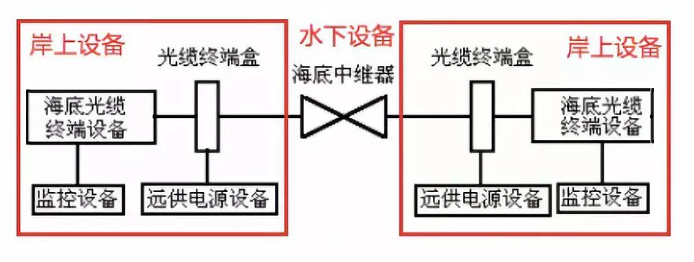 海底光缆系统由两部分组成:水下设备和岸上设备。