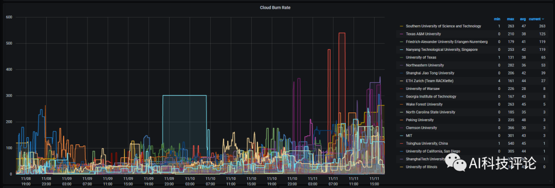 LINPACK/HPCG是两个经典的基准测试程序,用以测试集群的浮点运算性能,只有使用极大的算力才能获得高分,但巨大的算力背后是极高的花费,我们在比赛中使用了144块 V100来运行这个题目,每小时的花费高达533美元,也就是一个小时就足以花去总预算的1/6,因而这两个程序对资源调配以及负责运行的队员的心理素质、突发情况处理都有极大的考验。