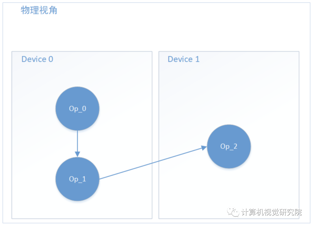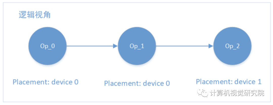 其中 Op_0 和 Op_1 的 Placement 是 Device 0,Op_2 的 Placement 是 Device 1,这就是一个流水并行的例子,Oneflow 会自动在 Op_1 和 Op_2 之间插入需要的数据搬运的 Copy Op。