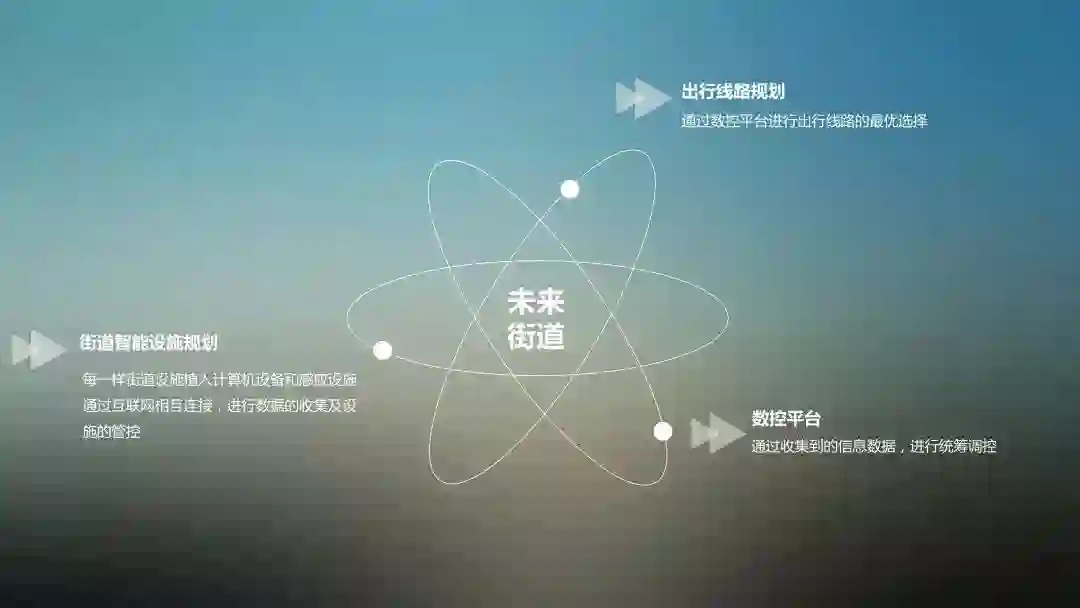 无人驾驶汽车、数字智能控制、自动感应装置、人脸识别科技等都将应用于未来街道上。未来街道规划将主要体现在两个方面:出行路线规划和街道智能设施规划。