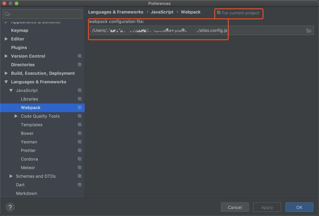 还有,若有多个项目,则要为每个项目创建 alias.config.js (文件名可以随意)文件,同样也要多次配置webstorm。