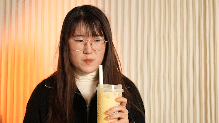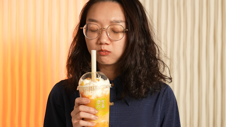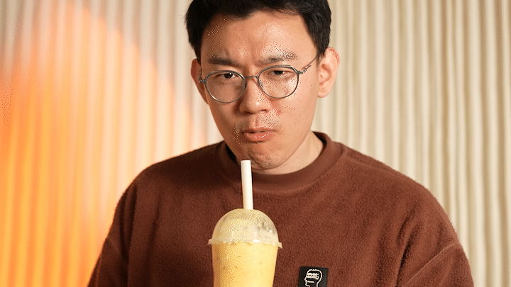 狠嘬一口,吃到了芒果果皮,芒果皮(是真的加了芒果的意思),超妹觉得还挺好喝。芒果冰沙增加了许多口感,味道十分清新。王哥竟觉得全糖还不够甜,料多,非常滴nice!