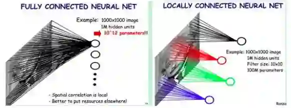这样的系统包括多层感知机,即多层神经元互相紧密相连的神经网络。深度 vanilla 神经网络就具备大量参数,因为缺乏充分的训练样本,它训练出的系统会发生模型过拟合的情况。但是如果使用卷积神经网络,从头训练网络的任务可以使用 ImageNet 等大型数据集。其背后的原因是神经元之间的参数共享和卷积层中的稀疏连接。在卷积操作中,一层的神经元仅与输入神经元存在局部连接,2-D 特征图共享参数集。