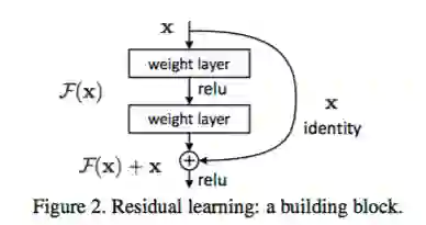 按我们目前所看到的,增加深度应该能够提升网络的准确率,同时也会导致过拟合。但增加深度的问题在于,在网络末端通过预测值和真值比较得到的权重修改信号,到了之前的层会变得很微弱。这基本上意味着网络之前的层几乎没有进行学习。这被称为梯度消失现象。而另一个问题在于,需要在巨大的参数空间中执行优化,随意增加层数会导致更大的训练误差。残差网络通过使用残差模型模块构建网络,从而训练此类深层网络(如下图所示)。这称为退化(degradation)问题。对于其工作原理可做如下解释: