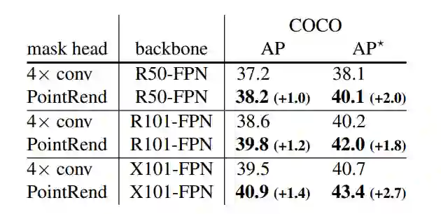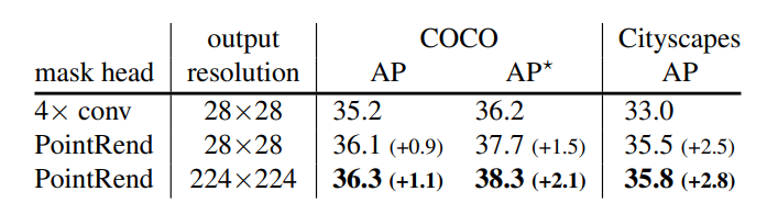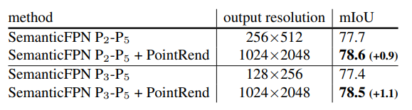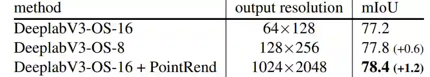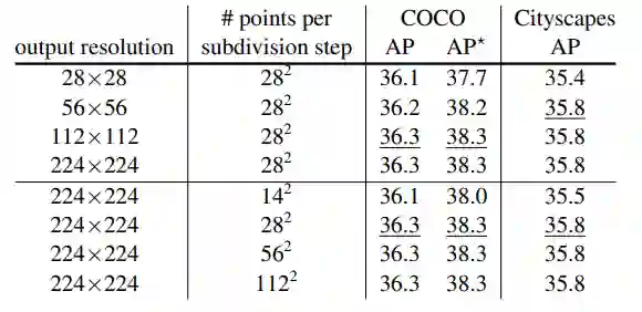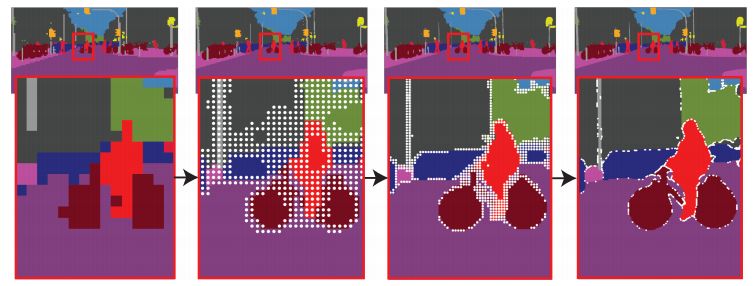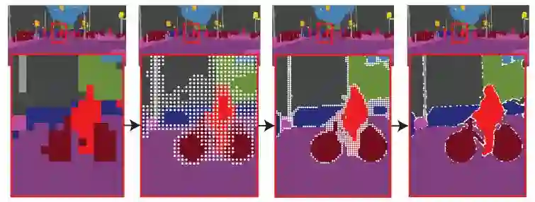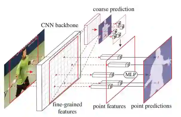 1. 点选择策略:选择少量真值点执行预测,避免对高分辨率输出网格中的所有像素进行过度计算;2. 对选中的每个点提取逐点特征表示:使用每个选中点在 f 规则网格上的 4 个最近邻点,利用 f 的双线性内插计算真值点的特征。因此,该方法能够利用 f 的通道维度中编码的子像素信息,来预测比 f 分辨率高的分割;3. point head:一个小型神经网络,用于基于逐点特征表示预测标签,它独立于每个点。