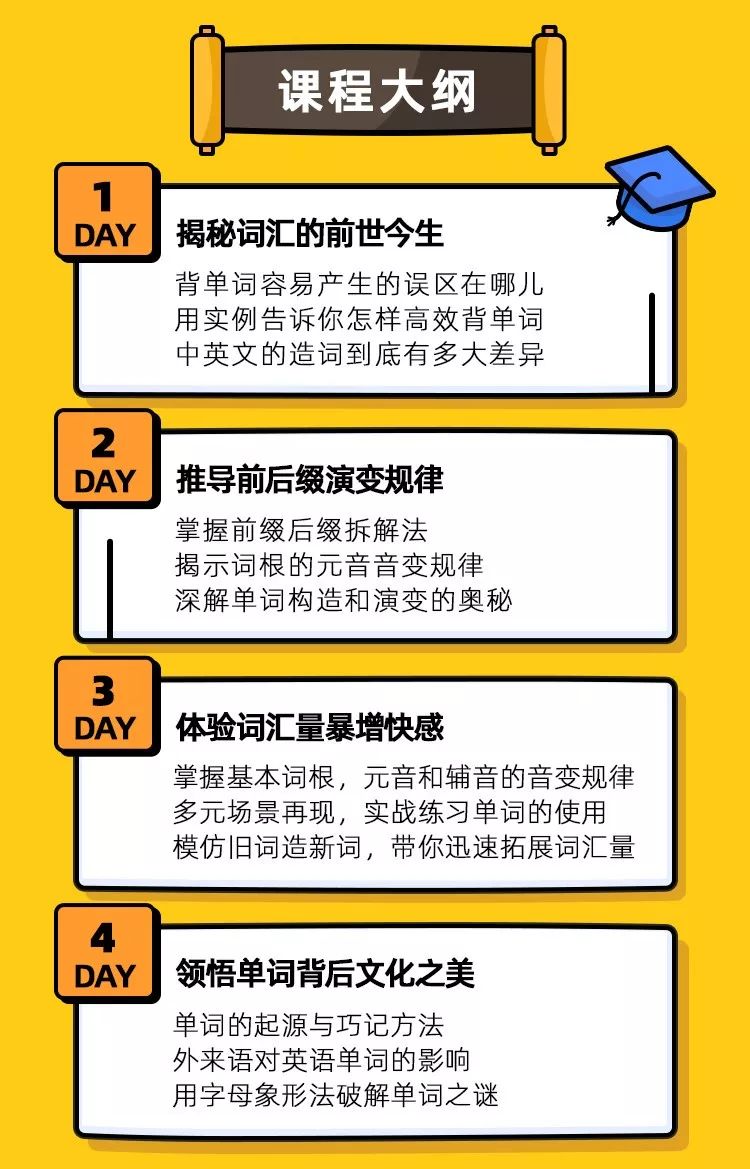 现在,邀你免费加入——20000词汇速记营,为你提供4天系统专业的词汇速记课程,名师在线指导,轻松快速地帮你打破英语瓶颈,实现质的提升。