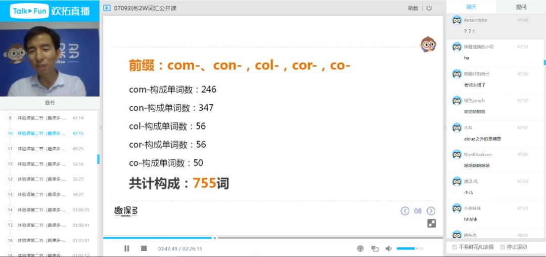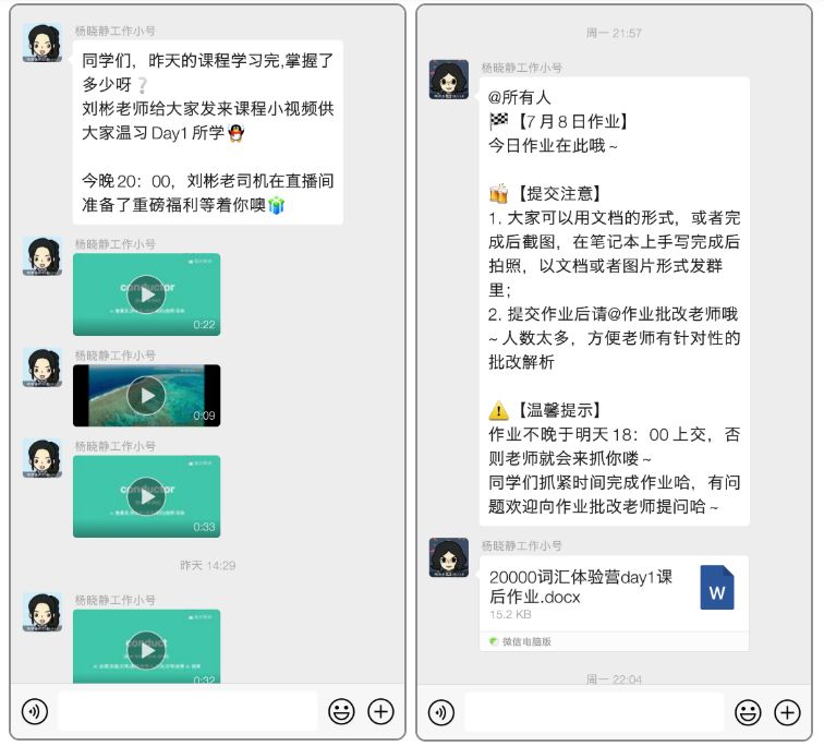 不同于常见的在微信群语音学习,20000词汇速记营采用直播和视频的线上教学方式。