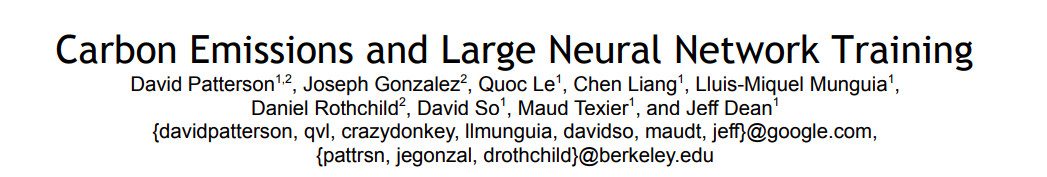在由谷歌人工智能首席科学家 Jeff Dean 合著的一篇论文中,模型、数据中心和处理器的选择可以减少多达100倍的碳足迹,并且对模型生命周期的「误解」导致了碳排放影响的错误估算。