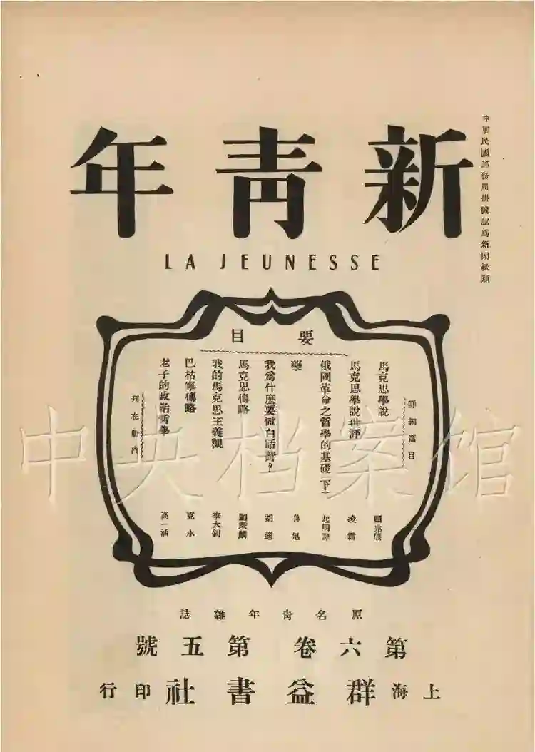 洞若观火的李大钊,则在《新青年》6卷5号发表开天辟地的那篇文章:《我的马克思主义观》。