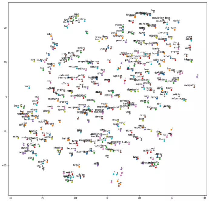 下图是课程作业的一个结果,词向量的 t-SNE 投影,通过相似性进行聚类。