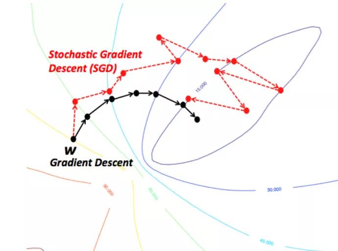 因此,由于地形(即函数性质)的限制,梯度下降算法很容易卡在局部最小值。但是,如果能够找到一个特殊的山地形状(比如碗状,术语称作凸函数),那么算法总是能够找到最优点。在进行最优化时,遇到这些特殊的地形(凸函数)自然是最好的。另外,山顶初始位置(即函数的初始值)不同,最终到达山底的路径也完全不同。同样,不同的流速(即梯度下降算法的学习速率或步长)也会导致到达目的地的方式有差异。是否会陷入或避开一个坑洼(局部最小值),都会受到这两个因素的影响。