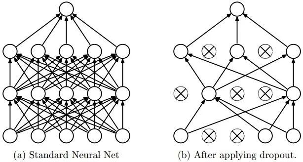 其主要思想是,在训练过程中随机地从神经网络中删除单元(以及相应的连接),这样可以防止单元间的过度适应。训练过程中,在指数级不同“稀疏度”的网络中剔除样本。在测试阶段,很容易通过使用具有较小权重的单解开网络(single untwined network),将这些稀疏网络的预测结果求平均来进行近似。这能有效地避免过拟合,并且相对于其他正则化方法能得到更大的性能提升。Dropout 技术已经被证明在计算机视觉、语音识别、文本分类和计算生物学等领域的有监督学习任务中能提升神经网络的性能,并在多个基准数据集中达到最优秀的效果。