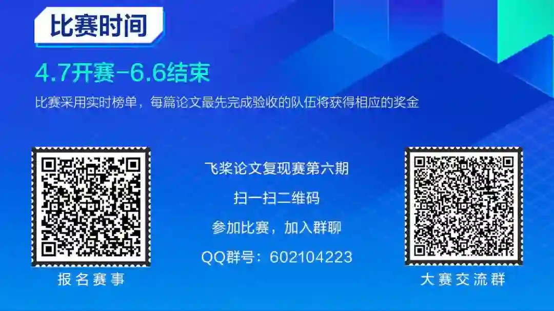 飞桨论文复现挑战赛(第六期)和春天一起来啦!本次挑战赛再度升级,无论是奋战过前五期比赛的复现冠军,还是首次接触论文复现的潜力选手,都有惊喜赛题任务等你来挑战。