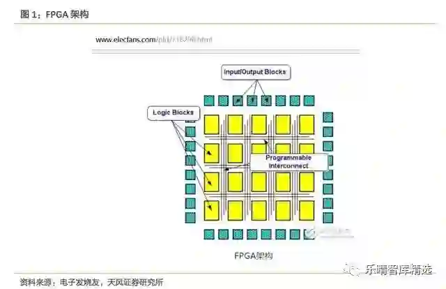 FPGA计算芯片布满“逻辑单元阵列”,内部包括可配置逻辑模块,输入输出模块和内部连线三个部分,相互之间既可实现组合逻辑功能又可实现时序逻辑功能的独立基本逻辑单元。