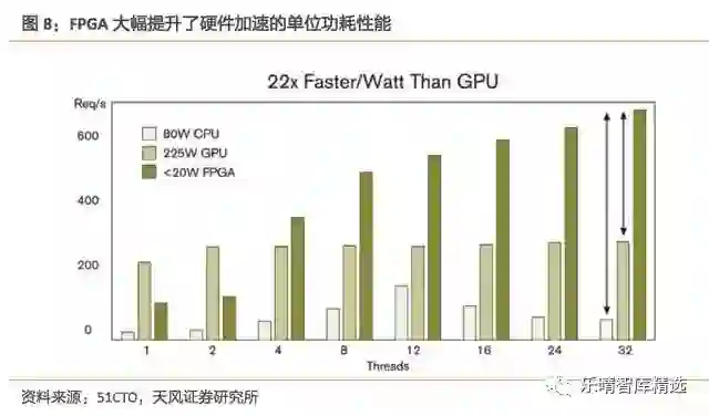 其次,FPGA的主频比CPU与GPU低很多,通常CPU与GPU都在1GHz到3GHz之间,而FPGA的主频一般在500MHz以下。如此大的频率差使得FPGA消耗的能耗远低于CPU与GPU。