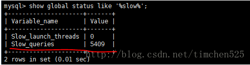 输入命令:show global status like ‘%slow%’;