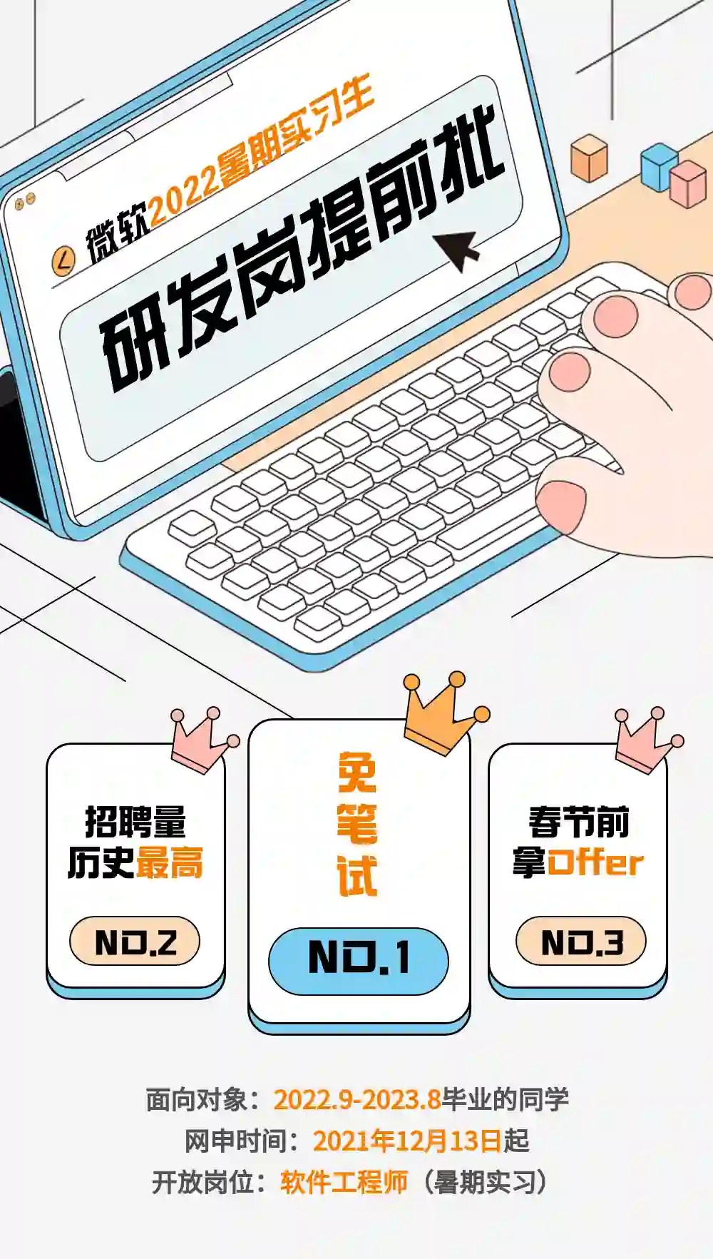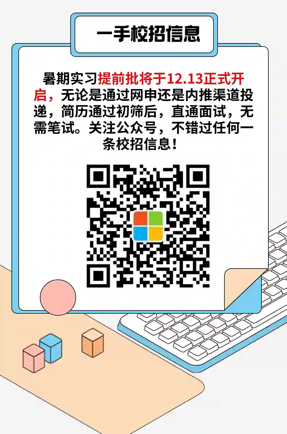 校招丨微软2022暑期实习生研发岗提前批即将上线