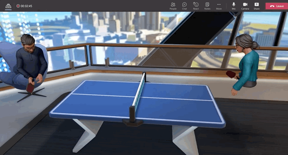 此外,Mesh for Teams可以预建一系列的沉浸式空间,支持会议和社交活动等各种环境。比如打乒乓球,或使用白板进行颜色编码任务,甚至在桌子上展示产品原型。