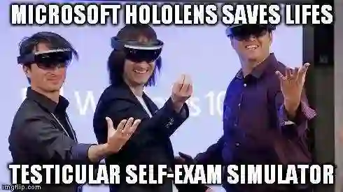 网民对HoloLens发布会的恶搞:「这动作,真是睾丸癌自检模拟器啊,救了亲命了」