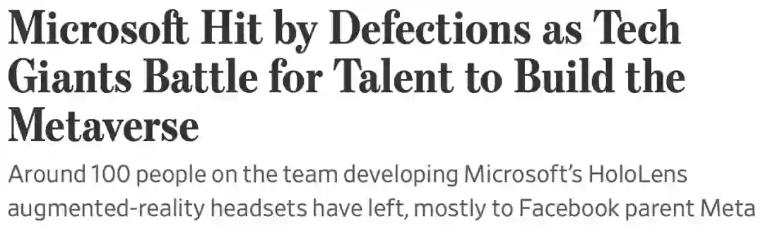 据华尔街日报报道,过去一年有100多人离开微软的混合现实部门,其中有不少都去了Meta。
