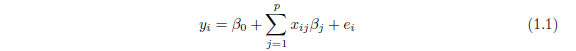 最典型的例子是线性回归,即有 N 组观测值,每组观测值由一个输出变量 yi 和 p 个相关预测子变量(也称特征)xi = (xi1, . . . , xip)T 所组成。线性回归的目标 是通过预测子来预测输出值,既要正确预测将来的数据,又要找出哪些预测子在起 重要作用。一个线性回归模型可设为:
