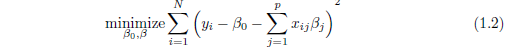通常,式(1.2)的所有最小二乘估计都不为零。若 p 很大,则最终模型会变得难以 解释。事实上,若 p > N ,最小二乘估计的结果并不唯一,有无穷多个解可使目标 函数为零,而且大多数解都会过拟和(overfit)数据。