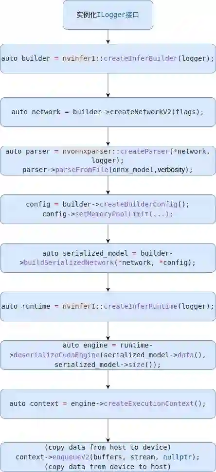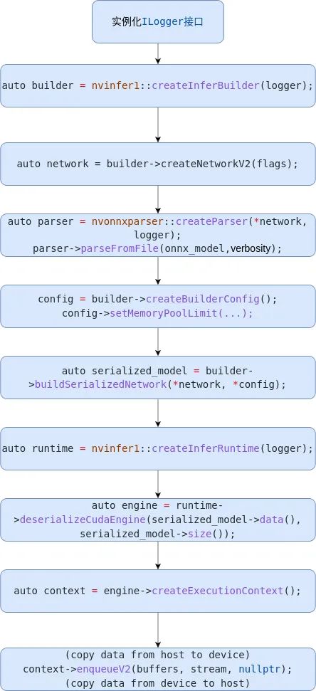 现在让我们先来看一下使用TensorRT框架进行模型推理的完整流程: