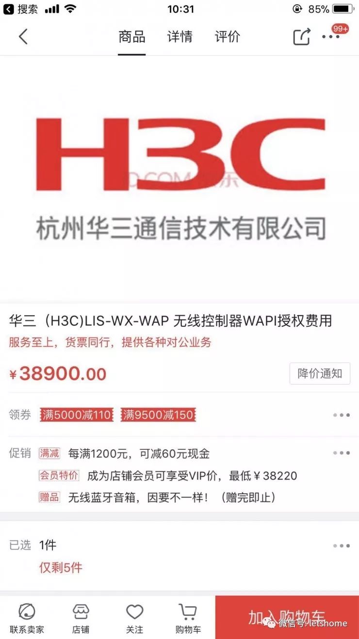 在这段时间内,除了坐等厂商修复,S 称,还有一个办法:用支持国标的 WAPI 路由器。“但是据说超贵。”S 说。到底有多贵?给你一张截图感受一下: