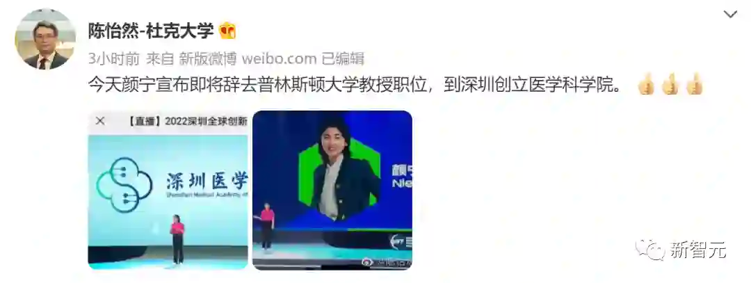 颜宁宣布回国的消息一经宣布,就在社交媒体上广为传播,杜克大学教授陈怡然在第一时间转发,并为她「点赞」。