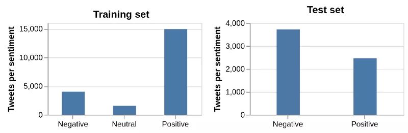 测试集中的分布截然不同。消极情绪比积极情绪更加丰富,没有一条推文透露出来的情绪是中立的。这使得模型平等对待所有的情绪变得更加重要。