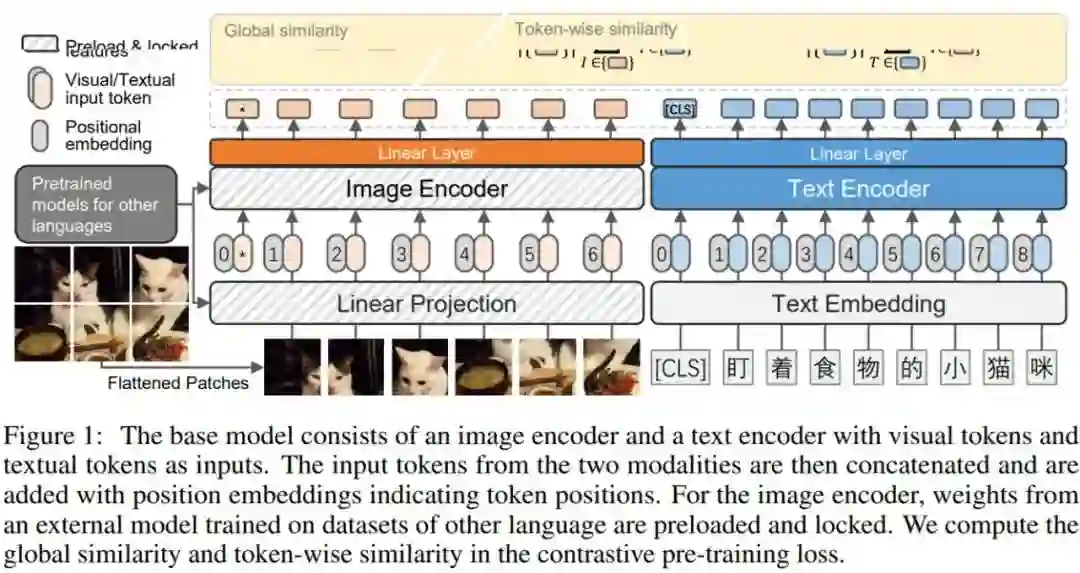 此外,研究者还发布了一组使用不同架构(ResNet/ViT/SwinT)和不同方法(CLIP、FILIP 和 LiT)训练的大型预训练模型。如图 1 所示,遵循用于视觉语言表示学习的双编码器架构,并采用对比学习的方式。最后研究者针对各种下游任务对各种模型进行了广泛的基准测试,例如零样本图像分类和图文、文图检索。