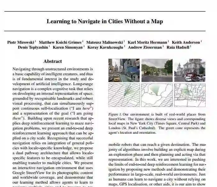 最近,DeepMind提出了一种全新的、双路径智能体结构,该结构采用端到端的强化学习进行训练,可处理城市级规模的真实视觉导航任务。