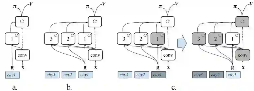 因此,我们使用了多城市(MultiCity)架构,首先在许多城市进行了训练,然后我们冻结了策略网络和视觉的卷积网络,并且在一个新城市中只有一条特定于地区的路径。