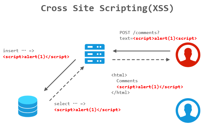 上述方式攻击脚本直接经服务器转手后返回浏览器触发执行,存储型与之的区别在于能够将攻击脚本入库存储,在后面进行查询时,再将攻击脚本渲染进网页,返回给浏览器触发执行。常见的套路举例如下: