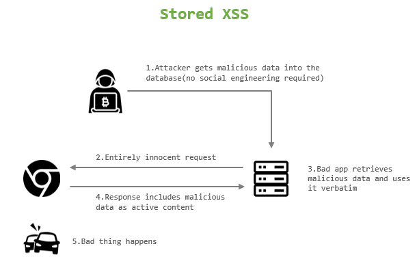 XSS攻击的核心是将可执行的前端脚本代码(一般为JavaScript)植入到网页中,听起来比较拗口,用大白话说就是攻击者想让你的浏览器执行他写的JS代码。那如何办到呢?一般XSS分为两种:
