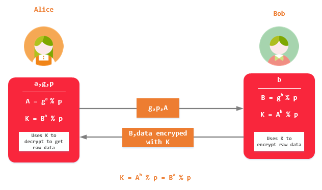 上面这个例子并不只是举例,在早期版本的HTTPS中,就是通过这种方式来进行密钥交换。而后来的版本中,另外一种叫DH及其变种的密钥交换算法用的越来越多。