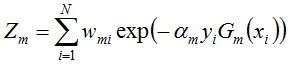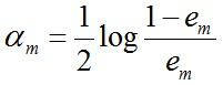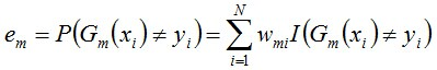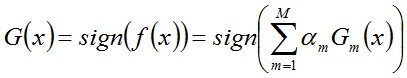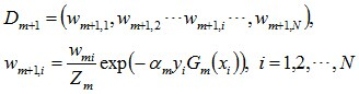 说一下Adaboost,权值更新公式。当弱分类器是Gm时,每个样本的的权重是w1,w2...,请写出最终的决策公式。
