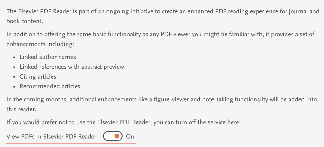如果不想被爱思唯尔获取个人信息,可以在网页中关掉默认的PDF阅读器。