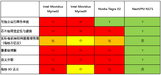 NextVPU N71对比Intel Movidius Myriad2/MyriadX/Nvidia Tegra X2
