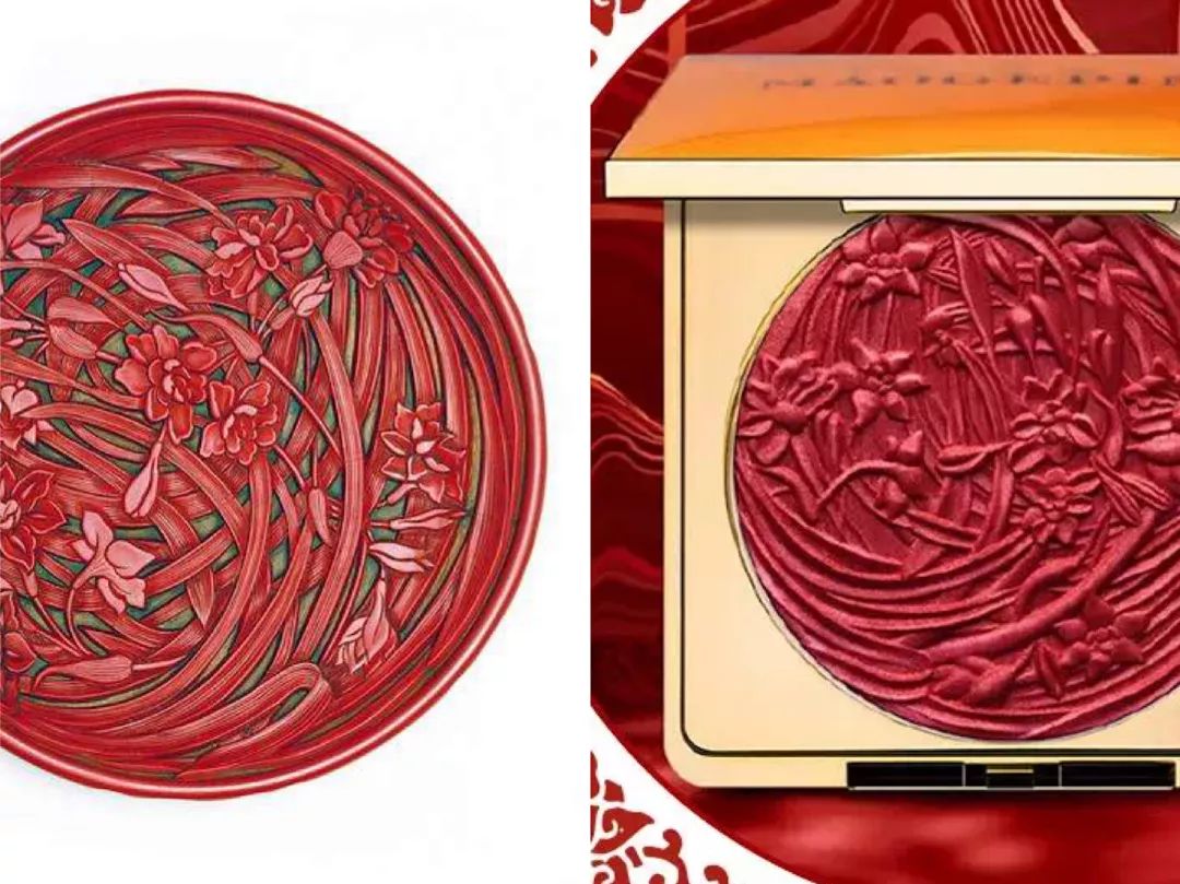 而腮红的设计来源于「剔红水仙纹圆盘」——
