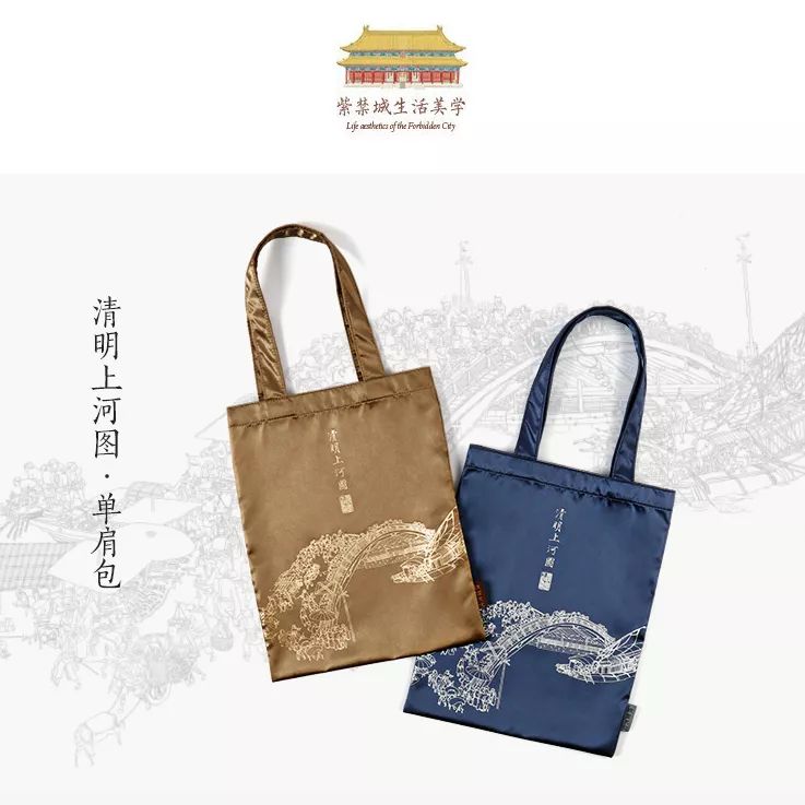 帆布袋见多了,见过这么恢弘大气的吗?设计师选用了《清明上河图》中经典的虹桥部分,以低调的哑金印制在袋面上。怎么背怎么显得有文化有底蕴。