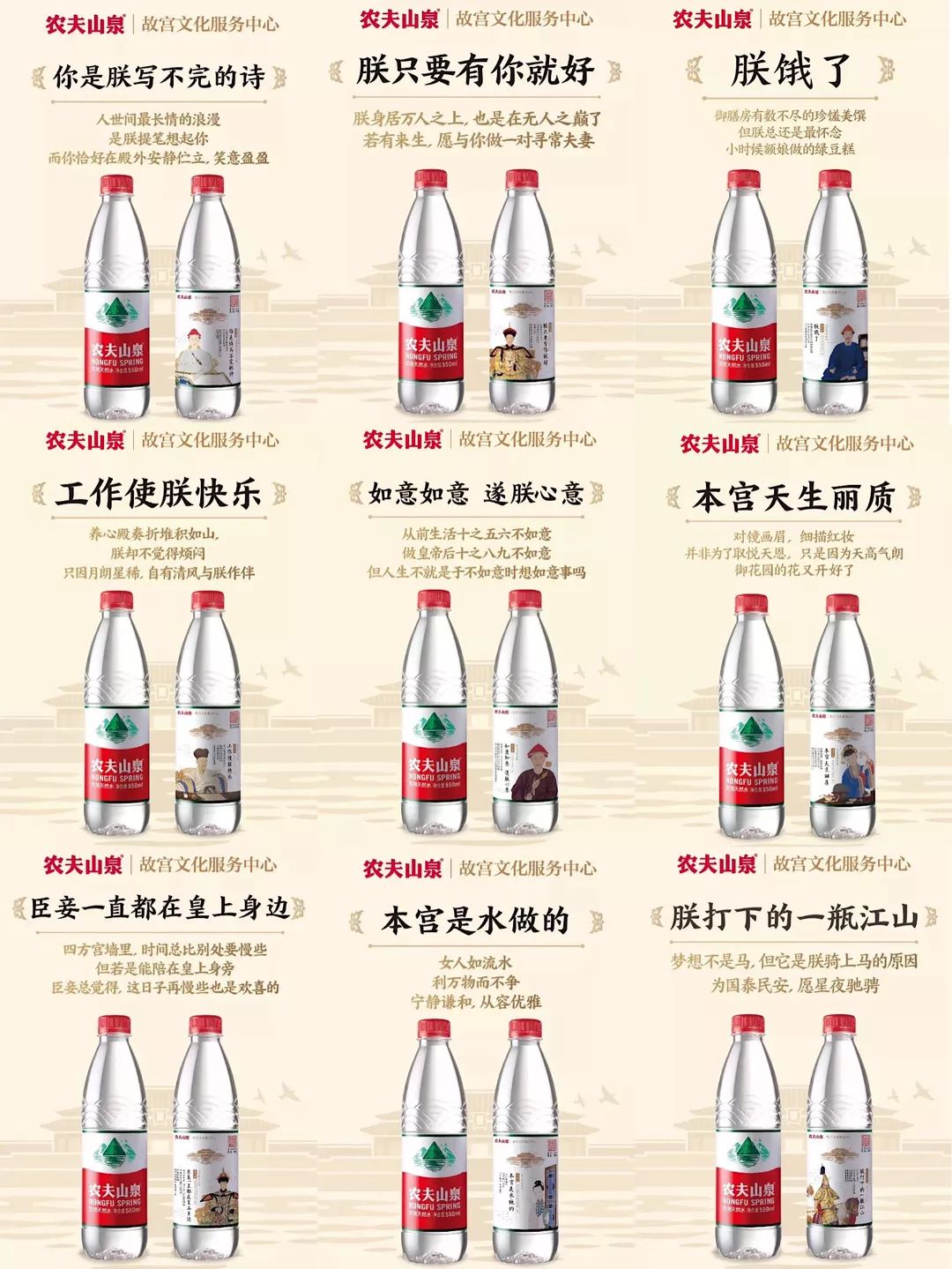 故宫和农夫山泉合作的9款矿泉水,骚操作全在文案上。