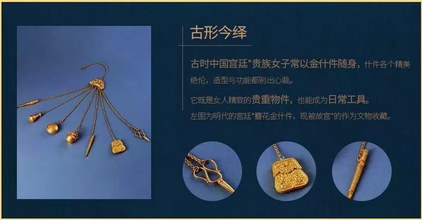 平价国货百雀羚和故宫的联名款,多了一丝名媛风范。不仅用上了金镶玉的技艺,还完美复刻了古代宫廷贵族女子随身携带的「金什件」。