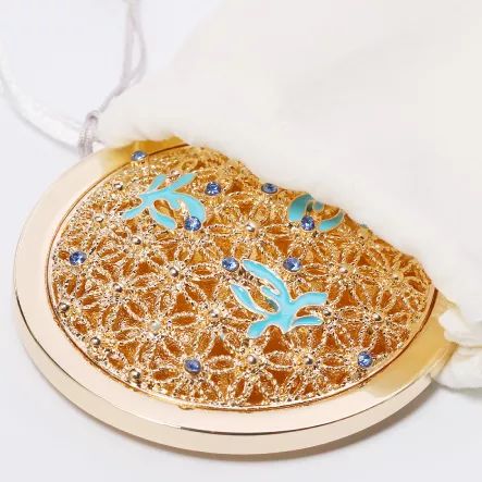 创意来源于故宫博物院的珍藏文物「金蕾丝花囊」,样子玲珑精巧,小小的一只用作补妆镜,哪个女孩子不喜欢呢?