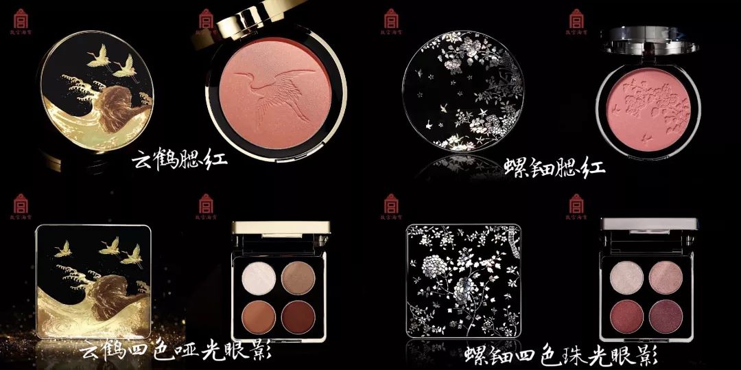 不仅如此,云鹤系列和螺钿系列还有腮红和眼影,美得又精致又东方。