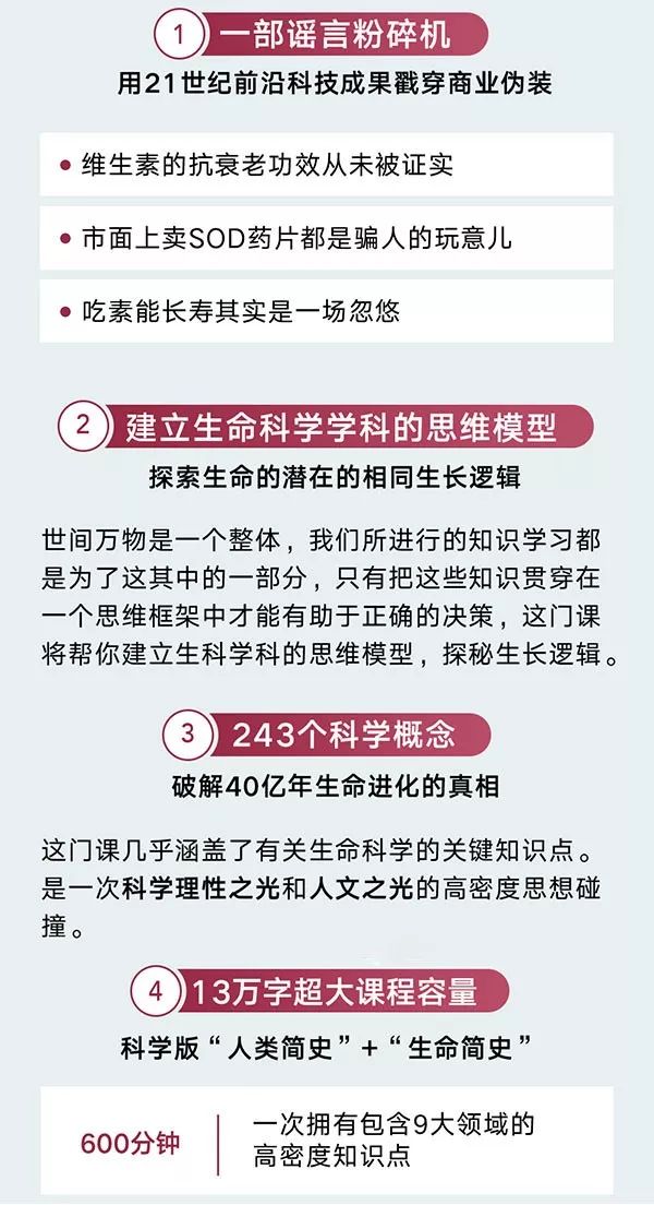 这是一堂饱含人文色彩的生命科普课程,用科学的角度去观察历史,用人文的关怀来认识生命科学。