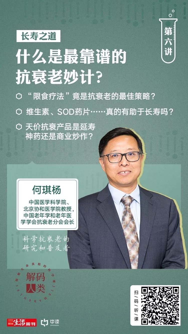 中国医学科学院北京协和医学院教授何琪杨,也担任中国老年学和老年医学学会抗衰老分会会长。他在老年基础医学和抗衰老药物领域研究多年。在这一讲,他将为你介绍具体的抗衰老策略,破除一些关于“长寿物质”的误区。