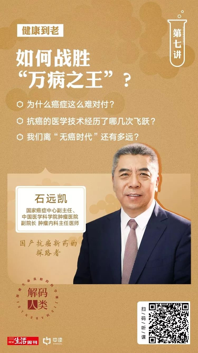 国家癌症中心副主任、中国医学科学院肿瘤医院副院长石远凯一直致力于抗癌新药的研究。根据国家药品监督管理局的统计,他是我国进行抗肿瘤新药临床研究最多的主要研究者。在这一讲,他将为我们科普关于癌症的知识。