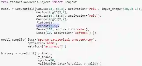 代码和上面一摸一样,在第一个全连接层前加一个 Dropout 层(高亮强调出)。