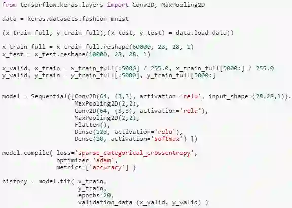 首先引进二维卷积层 Conv2D 和二维最大池化层 MaxPooling2D。在全连接层前我们放了两组 Conv2D + MaxPooling2D。